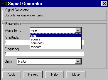 Die Wellenform ("Wave form") des Signalgenerators kann man mit Hilfe