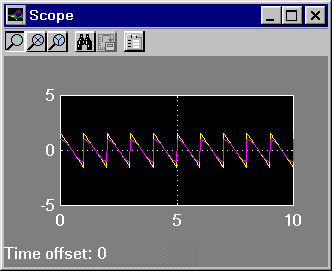 Mit "Control-T" wird die Simulation gestartet, und das Oszilloskop