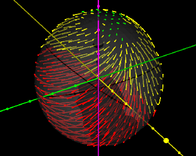 Es wurden einige unterschiedliche Darstellungsarten entwickelt: Zum einen das 'rohe' Ergebnis (Abb. {3) der FE-Rechnung: dies ist eine relativ schnell berechnete Vektordarstellung, die für die Untersucher ausreichend aussagekräftig ist. Die zweite Darstellung eignet sich für Präsentationen und multimediale Darstellungen, z.B. in der Form eines Videofilms. Sie zeigt nicht nur die berechneten Vektordaten, sondern zusätzlich das Becken (Abb. {2).