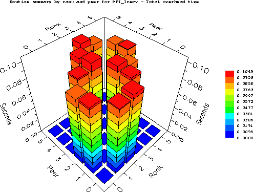 MPI-Overhead und Wartezeit pro Task/pro MPI_Routine: